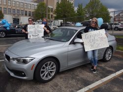 Cars, vans, and trucks of high school, middle school and elementary teachers, board members, and administrators showed their support for the Prexies’ Class of 2020 Friday night with a parade through the city. The caravan led by City of Washington Police, school officers, and city Firetrucks left Wash High about 5 p.m. and traveled to Highland Ave., East Washington, streets on the east side of town, back through the West end, and Tylerdale and back to the school lot. Seniors waved to their teachers who honked and waved and cheered. Prexies pride was on display for all to experience!