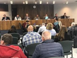 Roughly two dozen North Strabane Residents attended a conditional use hearing regarding the proposed Guyton Well Pad on Rt. 519. The meeting considering conditional use for the well pad on a 172 acre site lasted more than 90 minutes. The meeting included presentations by Range Resources and audience comments. Only 3 people offered comments. Heaven Sensky, a community activist for the Center For Coalfield Justice asked supervisors to continue to ask the hard questions to best represent residents and challenge companies to provide answers to those questions and not merely say that the obligations of the ordinance has been met. One resident who asked not to be identified asked that sound baffling be installed around the site. John Kitchen, a resident who lives right across the street from the proposed well site entrance asked that the entrance be moved from in front of his house. His request was not out of his own selfishness, he is concerned about safety. He testified to how he has witnessed 10 accidents in the 16 years that he has lived in his home. Those accidents included one fatality. Supervisors did not vote on the measure. They have 45 days to make their conditional use decision.