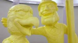 HARRISBURG, Pa. (AP) – Three of Pennsylvania’s professional sports mascots are depicted in the Farm Show’s butter sculpture, an annual feature of the state’s massive agricultural exposition. The sculpture was unveiled Thursday, two days before the Harrisburg event formally opens to the public. This year’s sculpture, crafted from about 1,000 pounds of donated butter, shows Gritty, Swoop and Steely McBeam, mascots for the Philadelphia Flyers and Eagles, and the Pittsburgh Steelers. This year’s Farm Show includes 12,000 competitive exhibits. It runs from Saturday through Jan. 11. Admission is free but parking in Farm Show lots is not.