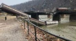 HARPERS FERRY, W.Va. (AP) – Several cars on a freight train derailed in crossing the Potomac River near Harpers Ferry, West Virginia, sending two cars into the water. Saturday’s derailment also damaged a footbridge that is part of the Appalachian Trail. CSX said in a statement that there were no injuries as seven cars derailed early Saturday. It says all the cars were empty and no hazardous materials were involved. The cause of the derailment is under investigation and CSX says it will work swiftly to clean up and restore the area. The derailment closed access to parts of Harpers Ferry National Historic Park and the Chesapeake & Ohio National Historic Park.