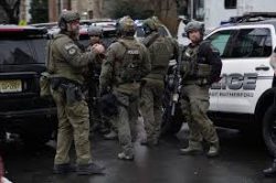 JERSEY CITY, N.J. (AP) – A police officer and multiple others have been killed in a shooting in Jersey City that authorities say is not believed to have been a terrorism attack. Mayor Steven Fulop says one officer was pronounced dead at a hospital and multiple other people were found dead at the scene. He says a second officer was struck in the shoulder by gunfire, and two others were injured by shrapnel. A statement from the Archdiocese of Newark says the nearby Sacred Heart School was put on lockdown, but all staff and students were safe. SWAT teams, state police and federal agents responded to the scene. (Photo: AP)