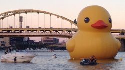 It’s duck season here in Pittsburgh, and yinzers want to honor Steelers quarterback Devlin “Duck” Hodges in huge way. A petition has been started to bring back the giant 40-foot inflatable rubber duck that once floated where the Allegheny, Ohio and Monongahela rivers meet. The petition on change.org says, “The people of Pittsburgh (aka Yinzers, aka Stiller Gang aka Steelers Nation) demand Mayor Peduto to return the legendary Rubber Ducky of 2013 to the Allegheny river in honor of Devlin “Duck” Hodges. We need 100,000 signatures to show the city we mean business.”
