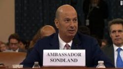 WASHINGTON (AP) – Ambassador Gordon Sondland has finished with almost six hours of testimony in a hearing that House Intelligence Committee Chairman Adam Schiff is calling “a seminal moment in our investigation.” Sondland, President Donald Trump’s European Union ambassador, told lawmakers that he worked with Rudy Giuliani on Ukraine policy at Trump’s direction and that “everyone was in the loop” as Giuliani and Trump pressured Ukraine for investigations. Schiff said Sondand’s testimony was “deeply significant and troubling.” Republicans pushed back. California Rep. Devin Nunes, the top Republican on the House intelligence panel, said there was “zero evidence” from Sondland’s testimony. A State Department spokeswoman has called “flat-out false” any suggestion that Ambassador Gordon Sondland told Secretary of State Pompeo that President Donald Trump was linking aid to Ukraine to politically motivated investigations. Spokeswoman Morgan Ortagus told reporters that Sondland “never told Secretary Pompeo that he believed the president was linking aid to investigations of political opponents.” Ortagus made the remarks to reporters accompanying Pompeo on his plane back to Washington from Brussels. Sondland testified that he kept top members of the Trump administration, including Pompeo, in the loop about Trump’s pressure on Ukraine for investigations. (Photo: CNN)