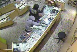Police are investigating a robbery at Kay Jewelers at Tanger Outlets in South Strabane Township Wednesday night. Police say a person called 911 to report a robbery. Police say the robbery occurred just before eight o’clock when two men entered the store armed with hammers, ordered everyone inside to the ground, and immediately began smashing showcases with hammers and removing jewelry. Police say the business was open at the time of the robbery and two employees were assisting seven customers, including three children ages seven and under. No employees or customers were injured during the robbery. The total dollar amount stolen is not yet available. The suspects were described as a B/M, approximately 6’3 wearing a black hooded sweatshirt and a B/M, approximately 5’6, wearing a gray sweatshirt. Responding Officers used witness descriptions and surveillance footage to track a suspects vehicle to the Hyatt Hotel parking lot. Police say they were able to locate vehicle and discovered that it had been reported stolen to the Robinson Township Police Department earlier that evening. (Photo: WPXI)