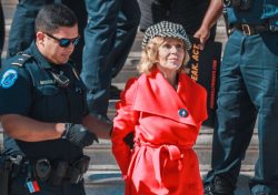 WASHINGTON (AP) – Jane Fonda is picking up where she left off in civil disobedience nearly a half-century ago. But there’s one thing that’s changed: That step up into the police wagon is tougher at age 81. U.S. Capitol Police arrested Fonda and fellow actor Sam Waterston on Friday in a second week of climate change protests. Fonda says she’s holding the events to draw more people into climate activism. Fonda tells The Associated Press she was last arrested for protesting in the 1970s. She says watching the climate activism of Swedish teenager Greta Thunberg helped inspire her to get back in. For a second Friday, Fonda stepped into the patrol wagon with hands bound. But this time, Fonda had managed to get her hands cuffed in front of her, for balance.