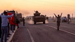 BEIRUT (AP) – A Kurdish news agency and a war monitor say Turkish troops have bombarded a convoy of vehicles taking residents of the northern city of Raqqa to a border town, inflicting casualties among them. The Kurdish Hawar news agency said the Thursday’s attack on the road leading to the border town of Tal Abyad killed three people and wounded several others.