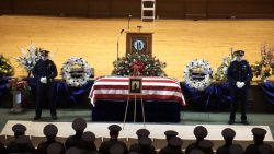 PITTSBURGH (AP) – Funeral services for an off-duty Pittsburgh police officer who was shot to death in a street confrontation more than a week ago were held Tuesday morning. Thirty-five-year-old Officer Calvin Hall died Wednesday, three days after he was shot three times in the back during a street dispute in the Homewood neighborhood as a party was going on. Police announced a criminal homicide charge against 30-year-old Christian Bey on Monday afternoon as a viewing for the slain officer was being held. Officials said the indictment is sealed so further details weren’t being released. Officials have said the off-duty officer may have been “acting under the color of law” at the time of his death. It was unclear whether Bey had an attorney. A number listed for him was out of service Monday. Funeral services were held at Soldiers and Sailors Hall in Oakland. Burial will follow at Homewood Cemetery. (Photo: WPXI)