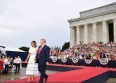WASHINGTON (AP) – President Donald Trump celebrated the Fourth of July on the National Mall with a salute to the military and American heroes of all types. Sticking closely to his script, Trump celebrated the story of America as “the greatest political journey in human history.” Supporters welcomed his tribute to the U.S. military while protesters assailed him for putting himself center stage on a holiday devoted to unity. As rain fell on him, Trump called on Americans to “stay true to our cause” during a program that adhered to patriotic themes and hailed an eclectic mix of history’s heroes, from the armed forces, space, civil rights and other endeavors of American life. A late afternoon downpour drenched the capital’s Independence Day crowds and Trump’s speech unfolded in occasional rain.