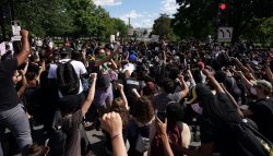 WASHINGTON (AP) – Tens of thousands of protesters have again taken to the streets across America. Peaceful demonstrations Sunday against police killings of black people have been overshadowed by unrest that quickly ravaged cities from Philadelphia to Los Angeles. A truck driver drove into demonstrators in Minneapolis nearly a week after George Floyd pleaded with an officer pressing a knee into his neck that he could not breathe. Outside the White House, police fired tear gas and stun grenades into a crowd who lit fire in a street. Thieves in more than 20 California cities smashed into businesses and ran off with sneakers, cellphones and TVs.