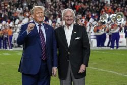 COLUMBIA, S.C. (AP) — Donald Trump used college football rivalry weekend to bask among his supporters in a state and region that are key to his presidential fortunes, while trying to upstage his Republican opponent Nikki Haley on her home turf at the Clemson-South Carolina football game. The former president and current front-runner for the 2024 Republican nomination arrived at Williams-Brice Stadium in Columbia on Saturday night to chants of “We want Trump!” Trump was a guest of South Carolina Gov. Henry McMaster. The entourage also included South Carolina’s senior U.S. Sen. Lindsey Graham, giving Trump a show of local political force at a game featuring Haley’s alma mater, Clemson, where she is also a member of the board of trustees.