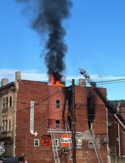 BROWNSVILLE, Pa. — (WPXI) – Emergency crews were called to the scene of a fire in Brownsville on Sunday evening. The fire started in an apartment above Pickers Pub & Grub in the 100 block of Bank Street around 5:30 p.m. Crews arrived on scene to find heavy fire on two different floors. A Channel 11 crew at the scene learned a firefighter was injured during the response and taken to a local hospital. Twelve people live in the building that caught on fire. It’s not clear how many of them have been displaced. The cause of the fire is under investigation.