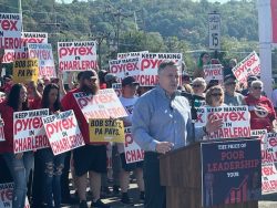Employees, retirees, and community members showed up at a rally on Friday in support of Corelle Glass plant workers who have been notified that their jobs are being moved to Lancaster, Ohio. On hand also to lend his support was Republican Senate candidate Dave McCormick who said he stood in solidarity with the plant workers. During the rally, Union vice president Daniele Byrne called for a Federal Trade Commission investigation into the transaction that saw the plant acquired by Anchor Hocking and investors Centre Lane Partners. Workers at the rally related how the plant is just like a family. They told of how their parents and grandparents worked at the 118 year old plant. Charleroi Borough Councilman Larry Celaschi pointed out the economic toll the closing of the Corelle plant and the Quality Pasta plant will have on residents. Borough Manager Joe Manning states that even though negotiations are still going on to save the plant, he and other officials are actively seeking other companies to invest in those plants and the workforce of Charleroi.