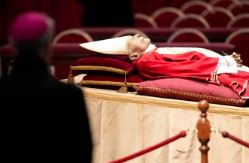 VATICAN CITY (AP) — Pope Emeritus Benedict XVI’s body is lying in state as thousands of people lined up across St. Peter’s Square hours before dawn on Monday to pay their respects. The doors of St. Peter’s Basilica opened for viewing by the public at just past 9 a.m. when the first faithful entered. Public viewing lasts for 10 hours on Monday in St. Peter’s Basilica. Twelve hours of viewing are scheduled for Tuesday and Wednesday before Thursday morning’s funeral which will be led by Pope Francis in the square.