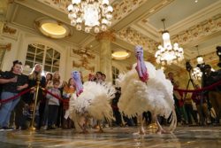 WASHINGTON (AP) — President Joe Biden is spending part of his 81st birthday observing the White House tradition of pardoning Thanksgiving turkeys. The gobblers receiving executive clemency at a ceremony Monday are named Liberty and Bell. The 20-week-old, 42-pound birds were hatched and bred in Willmar, Minnesota, by the Jennie-O turkey company for the occasion. The turkey pardon ceremony marks the unofficial start of the holiday season in Washington and will happen on an especially busy day for the White House. Besides celebrating the president’s birthday, Jill Biden welcomes delivery of a Fraser fir from North Carolina as the official White House Christmas tree. (Photo: AP)