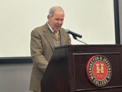 Washington and Jefferson College Students and business leaders in Washington County were treated to a rare program. Jose Miguel Aleman Healy, Panama’s Ambassador to the United States shared his views on the history and current relationship between Panama and the United States. He stepped back in history to when business titans in the U-S negotiated with Panama in the 1850’s to build the Panama Railroad that preceded the Panama Canal by nearly fifty years. He detailed the business relationship with the U-S describing Panama’s trade deficit with the U-S as a 10:1 ratio in favor of the U-S. His description of Panama’s economy is one based in logistics. He detailed diverse business opportunities available in his county. He was particularly adamant about the United States maintaining its lead in creativity in innovations both in business and technology. He admires the United States Education system for that creativity and says the creativity is what keeps the United States as a world leader over other countries such as China that copy other country’s innovations. He says that Panama is looking to tap into that innovation by having American universities expand into their country. Panama has recently met with Carnegie Mellon University for that reason. Attorney Frank Botta is a graduate of W&J and invited Ambassador Aleman Healy to speak. He hopes that the visit will open an opportunity for W&J to take advantage of the expansion plan.