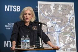 WASHINGTON (AP) — Investigators say the crew of the helicopter that collided midair with an American Airlines jet near Washington D.C.’s Ronald Reagan National Airport might not have heard an instruction from the air traffic controller to pass behind the plane. National Transportation Safety Board Chairwoman Jennifer Homendy said the recording from the Black Hawk helicopter cockpit suggests the crew may have missed the key instruction just before the Jan. 29 collision, in which all 67 aboard the two aircraft were killed. (Photo: AP)