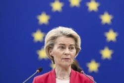 BRUSSELS (AP) — The European Union has announced its own countermeasures, saying they will enter into force from April 1, after the Trump administration officially increased tariffs on all steel and aluminum imports to 25%. European Commission President Ursula von der Leyen said on Wednesday that as the United States is “applying tariffs worth 28 billion dollars, we are responding with countermeasures worth 26 billion euros,” or about $28 billion. The commission manages trade and commercial conflicts on behalf of the 27 member countries. Von der Leyen said that the EU “will always remain open to negotiation.” Britain, which isn’t part of the EU, meanwhile said it won’t impose retaliatory measures of its own on the U.S.
