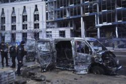 KYIV, Ukraine (AP) — Russia attacked the Ukrainian capital with a barrage of drones and missiles Saturday, leaving at least four people dead, while industrial sites in Russia were set ablaze by Ukrainian strikes. Four people were killed in the Shevchenkivskyi district, said Kyiv City Military Administration head Timur Tkachenko on Saturday. The city’s mayor, Vitali Klitschko, also said that windows were broken and there was smoke at the entrance of a residential building. He also said the Lukyanivska metro station was shuttered after the attacks damaged its glass entrance.