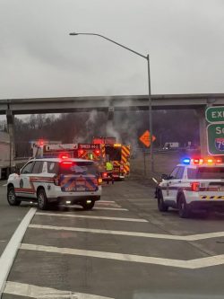 The South Strabane Fire Department was called to a fire near the ramp of Exit 21 (Interstate 79 South) at 3:14 pm on Tuesday. According to Washington County 9-1-1 officials, brakes on a tractor trailer caught fire. One lane of traffic was shut down for about 15 minutes during the incident. The fire was extinguished quickly. No injuries were reported. (Photo: South Strabane Fire Department Facebook)