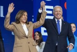 WASHINGTON (AP) — President Joe Biden and Vice President Kamala Harris thanked deep-pocketed Democratic donors who raised record sums in last month’s election loss to President-elect Donald Trump. The leaders of the outgoing administration at a Democratic National Committee holiday reception on Sunday urged the party’s important financial backers not to lose hope and to remain politically engaged. The Democratic Party needs the key donors to stay committed as it tries to pick up the pieces after Republicans took the White House and Senate while maintaining control of the House. Biden told the audience that “we all get knocked down,” but “the measure of a person or a party is how fast they get back up.”