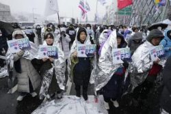 SEOUL, South Korea (AP) — Hundreds of South Koreans, bundled up against freezing temperatures and snow, rallied overnight near the residence of impeached President Yoon Suk Yeol, calling for his ouster and arrest, as authorities prepared to renew their efforts to detain him over his short-lived martial law decree. Dozens of anti-corruption agency investigators and police attempted to execute a detainment warrant against Yoon on Friday but retreated from his residence in Seoul after a tense standoff with the presidential security service that lasted more than five hours. The one-week warrant for his detention is valid through Monday. There were no immediate indications that authorities were ready to send investigators back to the residence as of Sunday afternoon.