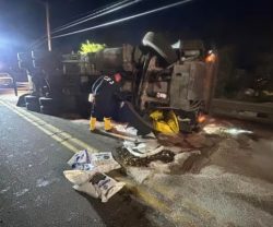 CHARLEROI, Pa. — The driver of a garbage truck was hurt this morning when his vehicle rolled over, closing Route 88 between the I-70 east ramps and Stableins Wholesale Store. Charleroi Fire Chief Bob Whiten tells WJPA News that the driver suffered non life-threatening injuries when the truck rolled over. Whiten says there was a significant hydraulic leak from the crash and the road was briefly closed while crews worked on cleaning it up. Whiten says the road reopened around eight o’clock. Authorities continue to investigate the cause of the crash. (Photo: Charleroi Fire Department)
