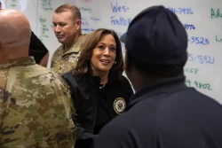 AUGUSTA, Ga. (AP) — President Joe Biden and Vice President Kamala Harris have toured the hurricane-devastated areas of North Carolina and Georgia. Biden, in a helicopter, flew over toppled trees, twisted metal and towering piles of debris Wednesday in the normally tourist friendly downtown of Asheville, North Carolina. At the same time, Harris was getting her own look at the storm’s damage in Georgia. Both were seeking to demonstrate a larger commitment and competence in helping damaged communities after Donald Trump’s false claims about their administration’s response. Harris praised the workers straining, in her words, “to meet the needs of people who must be seen, who must be heard.” (Photo: AP)