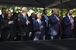 NEW YORK (AP) — Some 9/11 victims’ relatives have appealed to presidential candidates for accountability as the U.S. marks an anniversary laced with election-season politics. President Joe Biden, former President Donald Trump and Vice President Kamala Harris stood together Wednesday at ground zero just hours after Trump and Harris faced off in their first-ever debate. The image was one of putting politics aside at a solemn commemoration of the attacks that killed nearly 3,000 people in 2001. But some loved ones took the occasion to deliver political messages of their own. More than one spoke out against a now-revoked plea deal with alleged 9/11 mastermind Khalid Sheikh Mohammed. (Photo: AP)