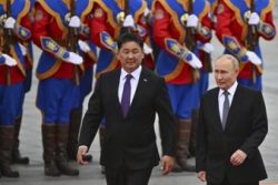 ULAANBAATAR, Mongolia (AP) — Russian President Vladimir Putin is visiting Mongolia with no sign that the host country will bow to calls to arrest him on an international warrant for alleged war crimes stemming from the invasion of Ukraine. The trip is Putin’s first to a member country of the International Criminal Court since it issued the warrant about 18 months ago. Ukraine has called on Mongolia to hand Putin over to the court, and the European Union has expressed concern that Mongolia might not execute the warrant. A spokesperson for Putin said that the Kremlin wasn’t worried.