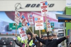 SEATTLE (AP) — Blue-collar workers from Boeing are walking picket lines in the Pacific Northwest instead of building airplanes after overwhelmingly rejecting a proposed contract that would have raised their wages by 25% over four years. The strike by 33,000 machinists that started on Friday will not disrupt airline flights anytime soon, but it is expected to shut down production of Boeing’s best-selling jetliners. And it marks yet another setback for a company already dealing with billions of dollars in financial losses and a damaged reputation. Boeing says it’s taking steps to conserve cash while the company’s new CEO looks for ways to come up with a contract that union members will accept.