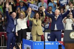 GLENDALE, Ariz. (AP) — Vice President Kamala Harris drew on her prosecutorial background to make her first expansive pitch on immigration to border-state voters as she and her new running mate, Minnesota Gov. Tim Walz, attracted thousands to a campaign rally in Arizona during their tour of battleground states. Harris, the former attorney general of California, reminded the crowd that she as a law enforcement official targeted transnational gangs, drug cartels and smugglers. “I prosecuted them in case after case, and I won,” Harris said in front of a crowd of more than 15,000 in Glendale, a suburb of Phoenix. “So I know what I’m talking about.”
