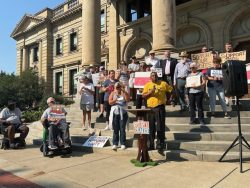 Activists gathered on the steps of the Washington County Courthouse to air their feelings about notification of deficient mail in ballots and ballot curing in upcoming elections in Washington County. The Center for Coalfield Justice hosted the rally about a hearing on arguments regarding the Washington County Board of Elections decision to not give mail in ballot users notice that their ballot contains errors and disallowing ballot curing in total. They want to make sure voters are aware that clerical errors may cause their vote not to count. Bracken Burns spoke on behalf of the Washington Branch of the NAACP in an address that went through the alphabet describing how the commissioner’s decision was unamerican, unpatriotic and unrepublican. Bruce Jacobs is one of those mail in ballot users that weeks after the April primary election, found out that his ballot was not counted and he considers himself disenfranchised. He said that the commissioner’s decision to not notify mail in voters of defects in their ballot was a deliberate act to disenfranchise. After the rally, the two dozen activists filled the courtroom of Judge Brandon Neuman to hear arguments in the case.