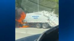 Part of I-70 was closed for several hours on Wednesday due to a garbage truck that caught fire. Washington County 911 said emergency crews responded to the Wheeling and Pittsburgh split of the interstate just before two o’clock, where they found a garbage truck nearly engulfed in flames on the shoulder of the interstate. Pennsylvania State Police said it appeared the truck was having some issues and pulled over before catching fire. No one was hurt in the blaze, dispatchers said. (Photo: WPXI)
