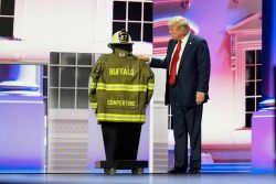 FREEPORT, Pa. (AP) — Thousands of mourners paid their respects at a Pennsylvania banquet hall to the family of a former fire chief who was fatally shot during the attempted assassination of former President Donald Trump. Trump sent a note of condolence hailing Corey Comperatore as a hero. The crowd appeared to be made up of friends, neighbors and strangers who showed their appreciation for the man who officials said spent his final moments shielding his wife and daughter from gunfire at the campaign rally. Fire trucks and police vehicles filled the parking lot outside the building. Comperatore, who was 50, also worked as a project and tooling engineer. A private funeral is scheduled for Friday.