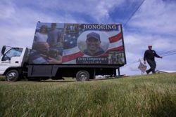 FREEPORT, Pa. (AP) — Thousands of mourners gathered to celebrate the life of the former fire chief who was fatally shot during the attempted assassination of former President Donald Trump at a Pennsylvania campaign rally. Fire trucks and police vehicles filled the parking lot outside the banquet hall where friends of Corey Comperatore went to pay their respects to him and his family. Sharpshooters were stationed atop buildings overlooking the venue and the dozens of people waiting in line to enter. Among the mourners were firefighters in dress uniforms and a group of five men in black suits with gold, red and blue “Trump 2024” buttons on their lapels. Comperatore, 50, worked as a project and tooling engineer, was an Army reservist and spent many years as a volunteer firefighter after serving as chief, according to his obituary. He spent the final moments of his life shielding his wife and daughter from gunfire, officials said. Trump suffered an ear injury but was not seriously hurt and has been participating this week in the Republican National Convention in Milwaukee. (Photo: AP)