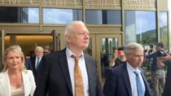 CANBERRA, Australia (AP) — WikiLeaks founder Julian Assange has returned to his homeland Australia aboard a charter jet hours after pleading guilty to obtaining and publishing U.S. military secrets. Assange raised his right fist as he emerged for the plane to a cheer from supporters at the Canberra airport. The deal with the Justice Department concludes a drawn-out legal saga. It came to a surprise end in a most unusual setting with Assange entering his plea in a U.S. district court in Saipan, the capital of the Northern Mariana Islands, on Wednesday.