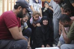 DEIR AL-BALAH, Gaza Strip (AP) — Gaza health officials say Israeli strikes on a tent camp outside the southern city of Rafah have killed at least 25 people and wounded another 50. Friday’s strikes were the latest deadly attack on displaced people in Gaza, where hundreds of thousands have fled fighting between Israel and Hamas. Witnesses whose relatives died in one of the bombardments near a Red Cross field hospital say that Israeli forces fired a second volley, which killed people who came out of their tents. The International Committee of the Red Cross said the hospital was flooded with casualties, including 22 dead and 45 wounded. It condemned the firing of “high-caliber projectiles” a few yards from the facility.