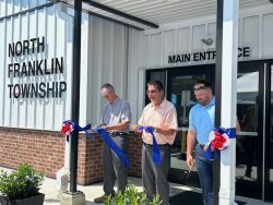 North Franklin Township held a ribbon cutting ceremony Saturday to debut their new municipal building. The new center is located at 345 Franklin Farms Road. The building is a $4 million dollar project that is 7000 square feet in size. Not only will it house township offices, it will also have a multi-purpose room available for public use. The building sits adjacent to the township’s Waterside Park that is undergoing development. The 89 acre park has a lake with walking trail. The township is also repurposing a former water company building. Supervisor Chairman Bob Sabot calls the opening of the building a “beginning.” He cited studies that indicate that people desire recreation areas in their communities and he says that this building and the park will go a long way to fill those needs. Sabot also stated that the building was built without raising taxes on North Franklin Township residents.