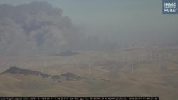 SAN FRANCISCO (AP) — California firefighters aided by aircraft are battling a wind-driven wildfire burning near the Lawrence Livermore National Laboratory. The California Department of Forestry and Fire Protection, or Cal Fire, says gusty winds were fueling the Corral Fire burning near the laboratory and the city of Tracy, 60 miles east of San Francisco on Saturday. Cal Fire has updated the size of the fire to 15.6 square miles from an earlier report of 13.7 square miles. Interstate 580 connecting the San Francisco Bay Area to central California has been closed in both directions near the fire.