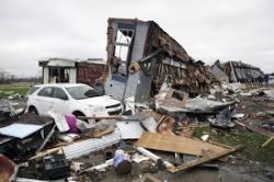 PAVILION TOWNSHIP, Mich. (AP) — At least eight tornadoes have touched down in Ohio and three have been confirmed in Michigan as severe storms barreled through the central U.S., killing one man in Tennessee when a tree toppled onto a vehicle he was in. The National Weather Service says confirmed tornadoes touched down Tuesday in Ohio, including five in Warren County in the state’s southwest region. Weather service meteorologist in Michigan Nathan Jeruzal says Wednesday that the tornadoes there touched down one each in Kalamazoo, Cass and Branch counties — all in the southwestern part of the state. Tornadoes were first reported after dark Tuesday in parts of Michigan, Indiana and Ohio, while portions of Illinois, Kentucky and Missouri were also under a tornado watch. (Photo: AP)
