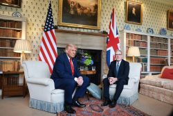 AYLESBURY, England (AP) — President Donald Trump has ended his visit to the United Kingdom by expressing gratitude for the royal treatment he received. But difficult geopolitical issues were largely sidestepped during the trip. Trump and Prime Minister Keir Starmer signed a tech agreement Thursday and praised one another during a news conference Thursday. They held private talks on the wars in Ukraine and Gaza, and disagreements were kept cordial. King Charles III and Queen Camilla went all out to welcome Trump at Windsor Castle a day earlier. At trip’s end, Trump’s helicopter carrying to the airport at Stansted make an unscheduled landing due to what the White House called a “minor hydraulic issue.” No one was injured. Trump later continued home on Air Force One.