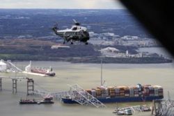BALTIMORE (AP) — President Joe Biden has gotten a firsthand look at efforts to clear away the hulking remains of the collapsed Francis Scott Key Bridge in Baltimore. Cranes, ships and diving crews are working to reopen one of the nation’s main shipping lanes. Biden was planning to meet during his Friday visit with relatives of the six people killed in the collapse. The cleanup and rebuild has high economic and political stakes. Though the federal government has provided quick-release funds to start recovery, the White House has called on Congress to approve all that will be needed without seeking a separate, emergency appropriations request. The House Freedom Caucus responded that such funding would have to come with conditions. (Photo: AP)