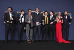 “Oppenheimer” continued to steamroll through Hollywood’s awards season on Saturday, winning the top prize, for outstanding cast, along with awards for Cillian Murphy and Robert Downey Jr., at the 30th Screen Actors Guild Awards. Lily Gladstone won for her leading performance in “Killers of the Flower Moon.” Cillian Murphy won outstanding male actor in a leading role for his performance as J. Robert Oppenheimer, landing him his first SAG Award. Robert Downey Jr. and Da’Vine Joy Randolph each won for their supporting performances, solidifying their status as Oscar favorites. The ceremony streamed live on Netflix.