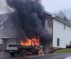MCDONALD, Pa. — (WPXI) – A neighbor sprang into action when a truck burst into flames, dangerously close to a McDonald home. WPXI spoke exclusively with the man whose quick thinking and actions may have saved the home. “I put my boots on and ran out the door,” Brandon Boyer said. “I got a fire extinguisher and then I tried to put the porch out and it didn’t do anything.” As the fire continued to spread, Boyer ran back and got in his truck. Boyer’s girlfriend shot a video that shows what he and her stepdad did next, working together to get the truck away from the home. “His quick thinking literally saved our house,” homeowner Michele Byra said. “To know there is good people out there still is touching.” “Because of him, my kids were put to bed in their beds last night, we all sang happy birthday to my husband and ate cake and because of him our house didn’t burn down,” Byra said.