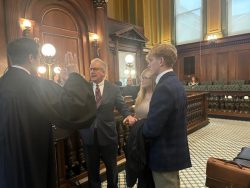January 2nd brought new life to communities as far as local governments are concerned. In Washington County the judiciary had their opportunity to swear in five judges to maintain order in the county. In the only public ceremony held at the Washington County Courthouse, current magisterial justice Phillippe Melograne, whose jurisdiction covers Peters Twp., Union Twp., Finleyville and the surrounding areas, was sworn in to his first six year term after being appointed to fill the remaining term of Judge Jesse Pettit who was elected to the court of common pleas. Melograne spoke of being happy to be on the front lines of justice in an attempt to be one of the first people to help those who may have made a mistake. Other magisterial judges who were sworn in privately were Mark Wilson from the Monongahela area and Gary Havelka from the Burgettstown area. Common Pleas Court Judges Valarie Costanzo and Michael Lucas were also sworn in during private ceremonies. Both Costanzo and Lucas were retained for another 10 year term in last November’s general election.