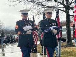 Three Washington County Veterans whose remains were unclaimed were buried Wednesday at the National Cemetery of the Alleghenies. Aubrey Higginbotham, a Tuskegee Airman in World War II, his brother Louis who served in the army during World War II and Joseph Calhoun, a marine that served during the Viet Nam war were given their proper burial. Myles Glotfelty, a retired U.S. Army veteran from Lone PIne was friends with Calhoun and took on the responsibility to properly honor the three heroes with the assistance of former Marine and Washington County Commissioner Larry Maggi. Glotfelty started the process of properly burying the veterans in March. He pointed to the Soldier’s Creed that states to “never leave a fallen comrade” as his motivation to finish his mission. Commissioner Larry Maggi lent his expertise to break through red tape to efficiently have the soldiers’ remains released by the Washington County Coroner for proper burial. A twenty one gun salute and the playing of taps sent the heroes to their final resting place.