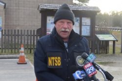 SHAMONG, N.J. (AP) — New details are emerging about the fatal crash of a Philadelphia TV news helicopter earlier this week. The National Transportation Safety Board says WPVI’s Chopper 6 was returning to its base at Northeast Philadelphia Airport Tuesday night when something caused it to crash into Wharton State Forest in New Jersey’s Washington Township. Investigator Todd Gunther (pictured) says the chopper hit the trees at high speed, broke apart and caught fire. Killed in the crash were the pilot, 67-year-old Monroe Smith of Glenside, Pennsylvania, and a photographer, 45-year-old Christopher Dougherty of Oreland, Pennsylvania. They were returning from photographing Christmas light displays near Atlantic City.
