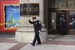 PHILADELPHIA (AP) — Prosecutors in Philadelphia have charged a man with murder and other counts in the fatal stabbing of a department store security guard and wounding of another. Thirty-year-old Tyrone Tunnell is jailed without bail in the Monday attack and will have a preliminary hearing within two weeks. Authorities say Eric Harrison and another guard saw Tunnell attempting to steal some hats at a Macy’s and took back the merchandise. They say Tunnell left the store but returned a short time later with a knife and confronted Harrison, stabbing him in the neck and the other guard in the face and arm. Harrison was declared dead at a hospital and the other guard underwent surgery. Authorities arrested Tunnell at a train station. (Photo: AP)