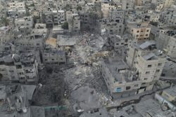 NEW YORK (AP) — Hundreds of protesters have filled the main concourse of New York City’s famed Grand Central Terminal to demand a cease-fire as Israel intensifies its bombardment of the Gaza Strip. Protesters wore black T-shirts saying “Jews say cease-fire now” and “Not in our name.” They staged the sit-in during the evening rush hour Friday, chanting slogans and unfurling banners. The New York Police Department says at least 200 were detained. The protesters were led out of the station with their hands zip-tied behind their backs, issued summons and released. Israel stepped up airstrikes across the Gaza Strip on Friday, knocking out internet and largely cutting off communication with the 2.3 million people inside the besieged Palestinian enclave.