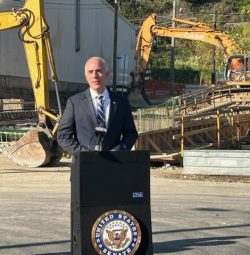 Senator Bob Casey was in Washington on Friday to promote the accomplishments of the Bilateral Infrastructure Law (BIL) in Washington County. Casey and other state and local leaders gathered at the West Wheeling Street Bridge that crosses Catfish Creek between Jefferson Avenue and Mill Street. That bridge is being replaced with $1.13 million from the Bipartisan Infrastructure Law. Two additional bridges are also being replaced with those funds. The bridge that carries Valley Road over Brush Run in Cecil and Chartiers Townships. Is being funded at $1.13 million. Additionally, the North Hewitt Avenue bridge over Georges Run in Canton Twp. has been completed with $1.19 million from the BIL. Casey stated that this is the first time in several decades that the federal government has stepped in to do its share in the repair and upkeep of roads and bridges. He went on to comment that counties and local municipalities simply do not have the available funds to do the repairs necessary and the federal government needs to continue its support.